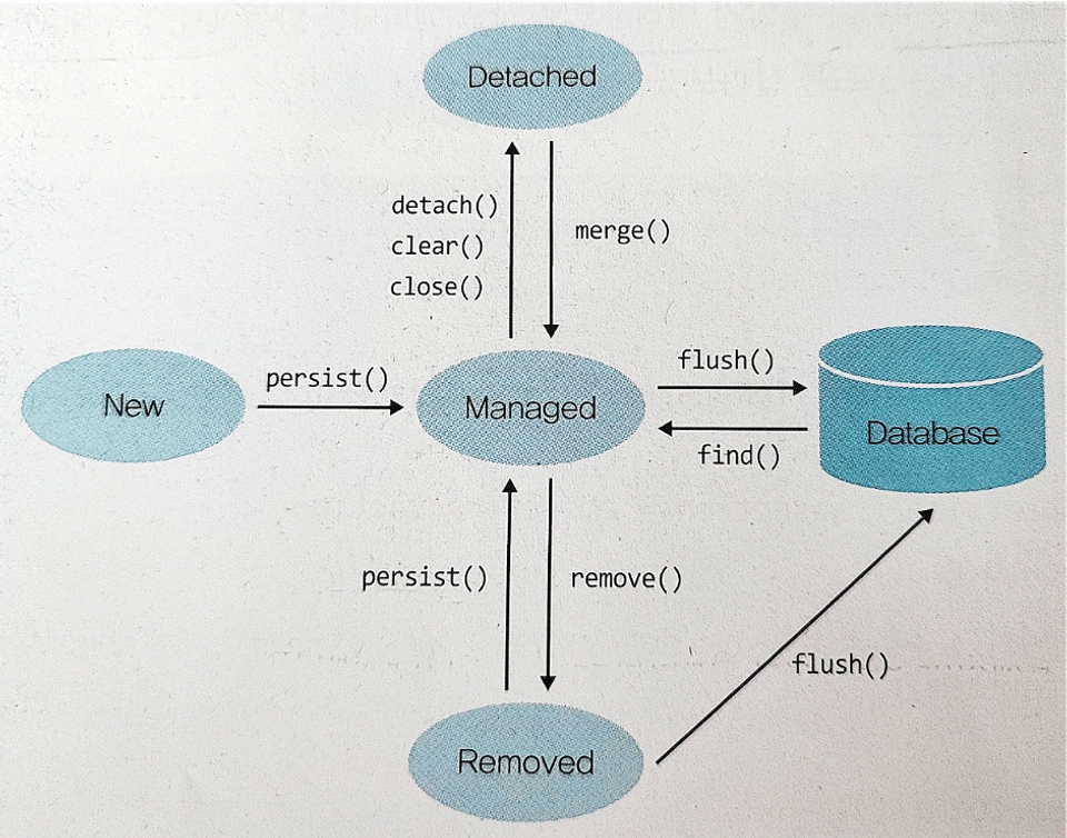 new > (비영속상태) > persist(),merge() > (영속성 컨텍스트에 저장된 상태)