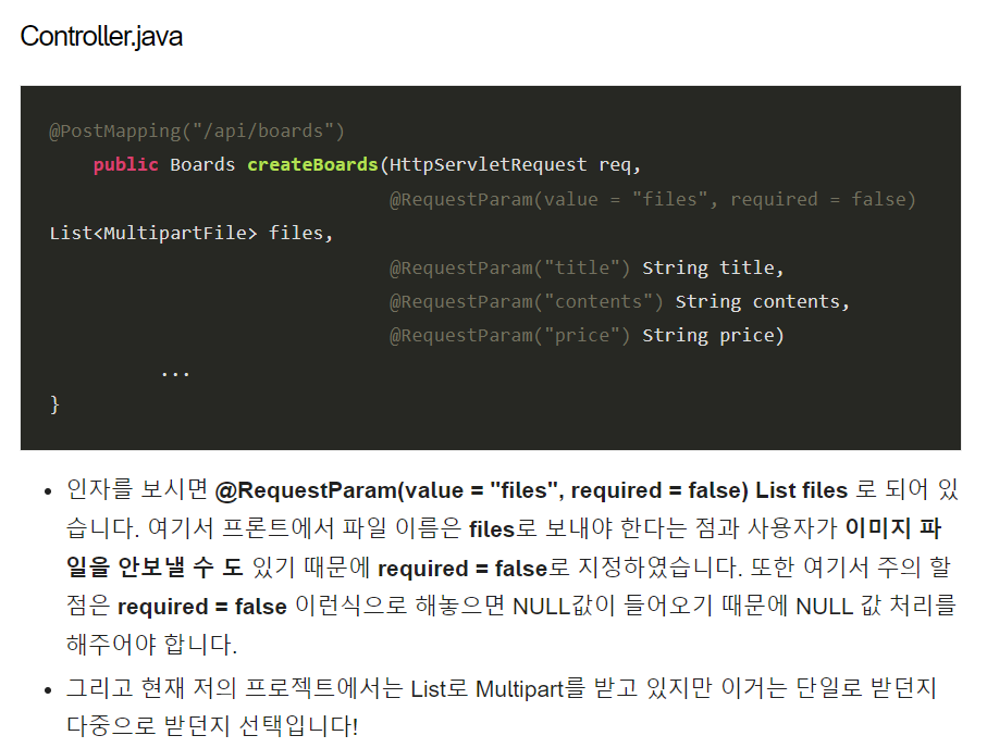 문제 - @RequestParam + @RequestBody 쇼핑몰 토이 프로젝트 중 해당 품목의 이미지를 첨부하고 품목 정보를 입력해 아이템을 등록하는 기능을 구현하려고* MultipartFile은 @RequestParam으로 Dto는 @RequestBody를